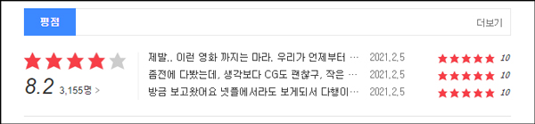 네이버 영화, 네티즌 기준 별점 4개 입니다. 다음 영화도 동일하게 4개의 별점을 받았습니다. 그리고 감상평의 내용은 비슷비슷 합니다.